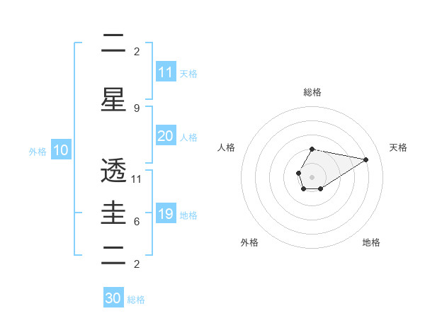 二星 透圭二さんを姓名の画数から五運を鑑定