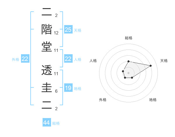 二階堂 透圭二さんの外格は22画の1点!