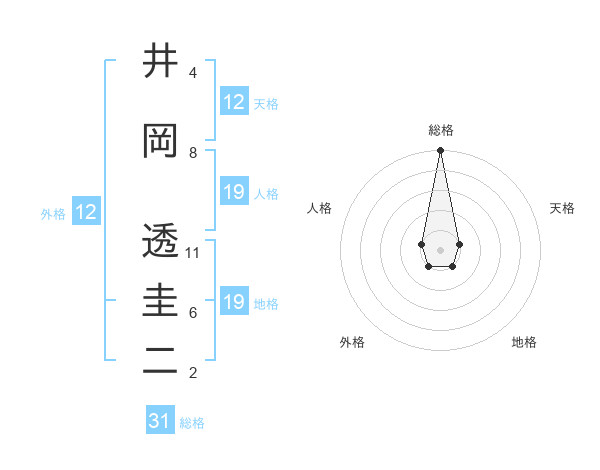 井岡 透圭二さんの総格は31画の5点!