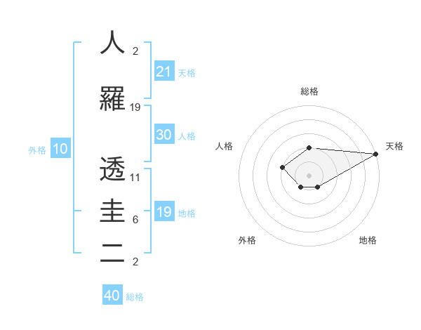人羅 透圭二さんの天格は21画の5点!