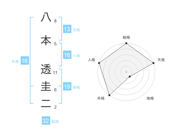 八本 透圭二さんを姓名の画数から五運を鑑定