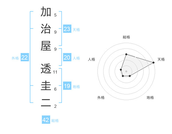 加治屋 透圭二さんの天格は23画の5点