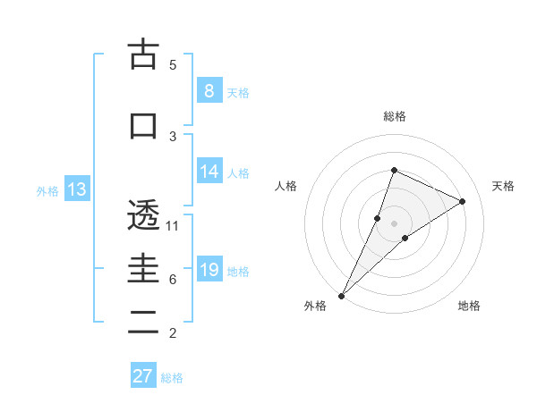 古口 透圭二さんの総格は27画の3点!