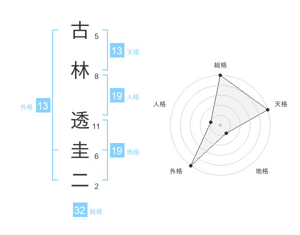 古林 透圭二さんを姓名の画数から五運を鑑定