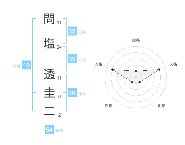 問塩 透圭二さんを姓名の画数から五運を鑑定