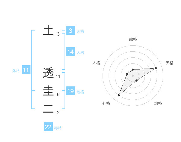 土 透圭二さんの外格は11画の4点!