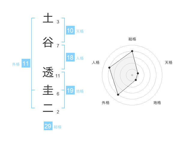 土谷 透圭二さんを姓名の画数から五運を鑑定