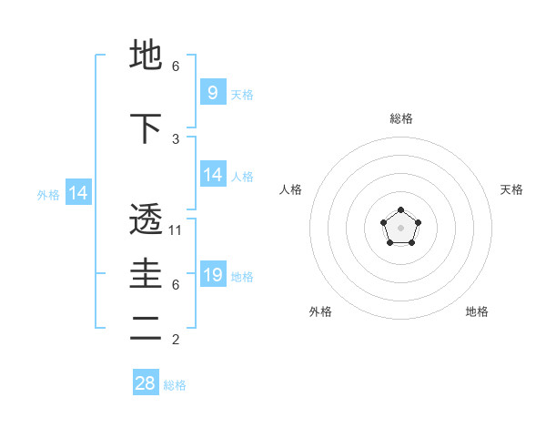 地下 透圭二さんの総格は28画の1点!