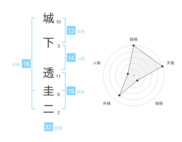 城下 透圭二さんを姓名の画数から五運を鑑定