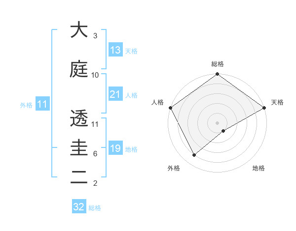 大庭 透圭二さんの天格は13画の5点!