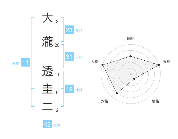 大瀧 透圭二さんの天格は23画の5点!