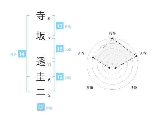 寺坂 透圭二さんの天格は13画の5点!