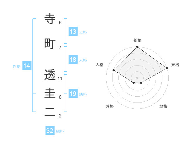 寺町 透圭二さんの総格は32画の5点!