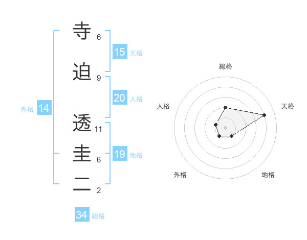 寺迫 透圭二さんの総格は34画の2点!