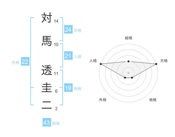 対馬 透圭二さんの天格は24画の5点!