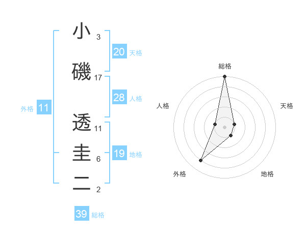 小磯 透圭二さんを姓名の画数から五運を鑑定
