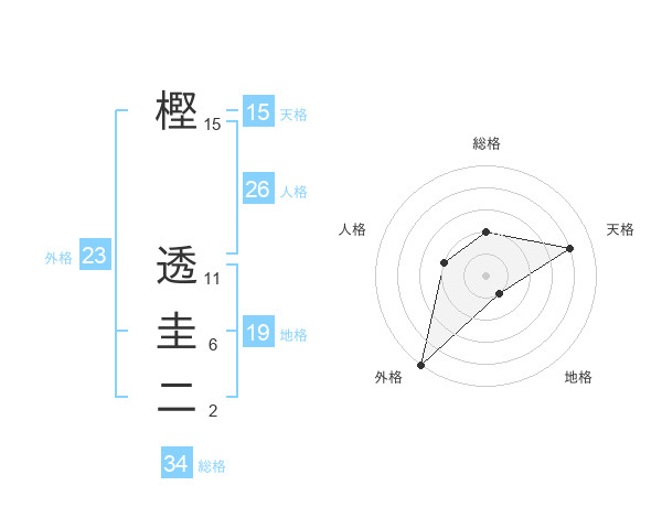 樫 透圭二さんを姓名の画数から五運を鑑定