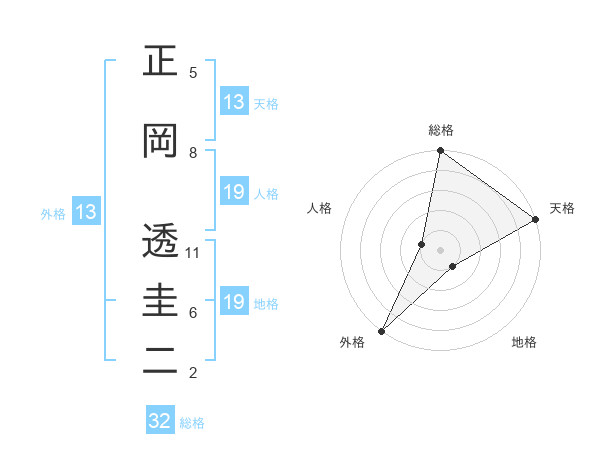 正岡 透圭二さんの外格は13画の5点!