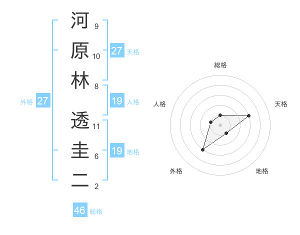 河原林 透圭二さんを姓名の画数から五運を鑑定