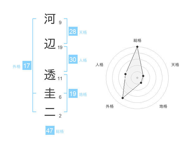 河辺 透圭二さんの総格は47画の5点!