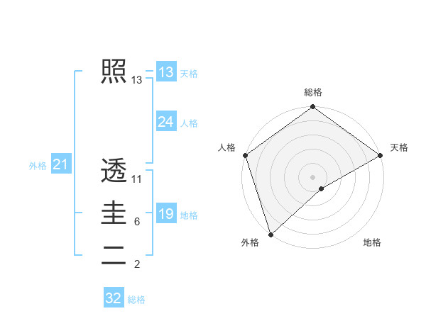 照 透圭二さんの天格は13画の5点!