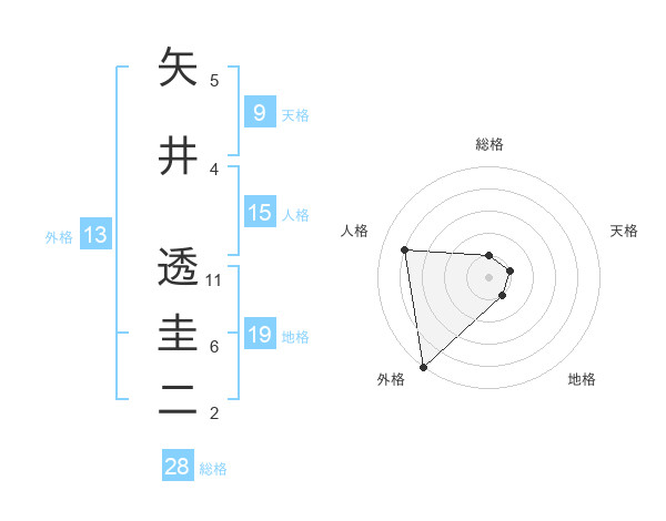 矢井 透圭二さんを姓名の画数から五運を鑑定