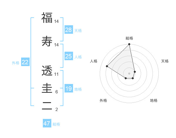 福寿 透圭二さんを姓名の画数から五運を鑑定