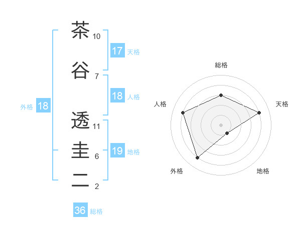 茶谷 透圭二さんの天格は17画の4点!
