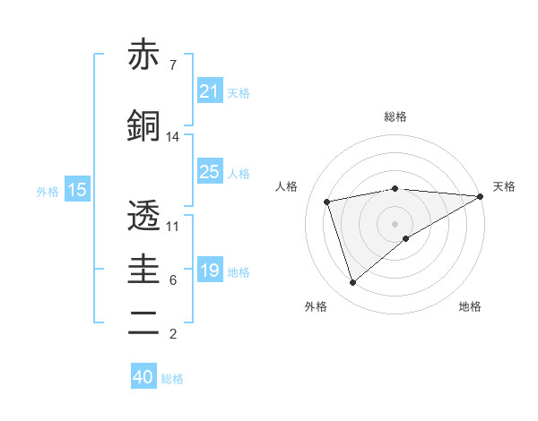 赤銅 透圭二さんを姓名の画数から五運を鑑定