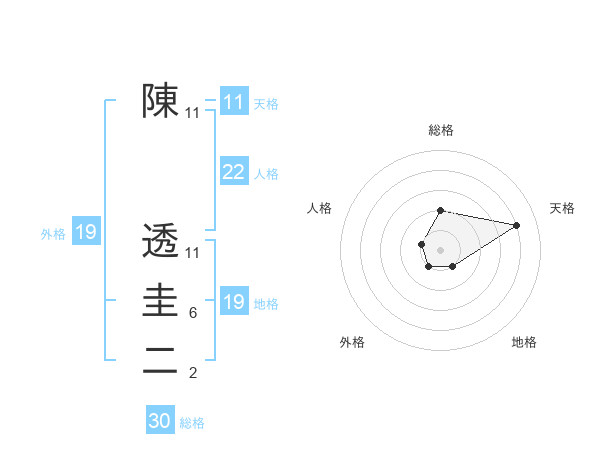 陳 透圭二さんの天格は11画の4点!