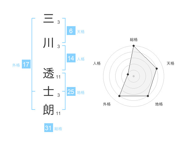 三川 透士朗さんの総格は31画の5点!