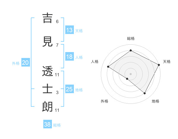 吉見 透士朗さんを姓名の画数から五運を鑑定