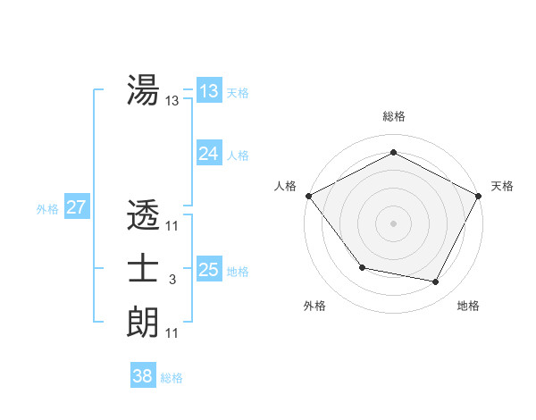 湯 透士朗さんの総格は38画の4点!