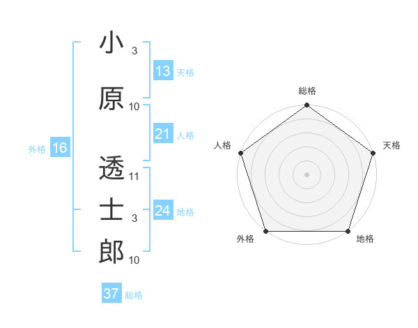 小原 透士郎さんを姓名の画数から五運を鑑定