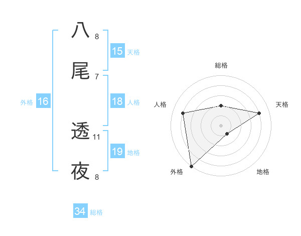 八尾 透夜さんの総格は34画の2点!