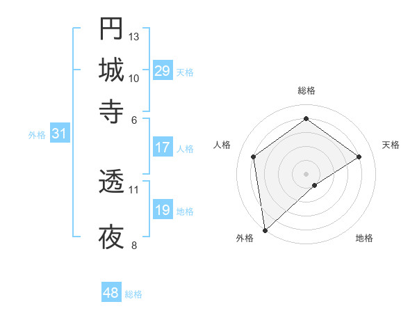 円城寺 透夜さんを姓名の画数から五運を鑑定