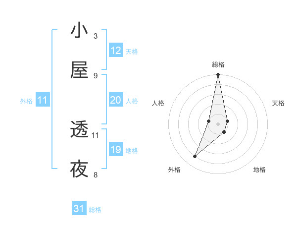 小屋 透夜さんの総格は31画の5点!