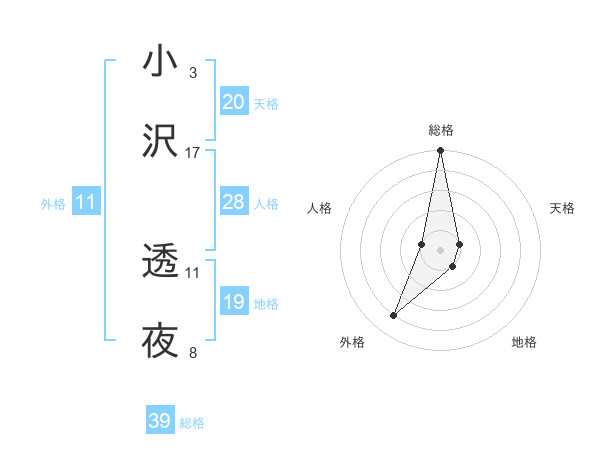 小沢 透夜さんの外格は11画の4点!