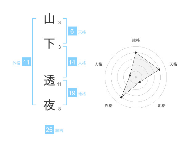 山下 透夜さんの総格は25画の4点!