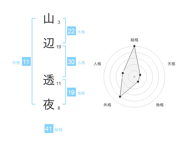 山辺 透夜さんの総格は41画の5点!
