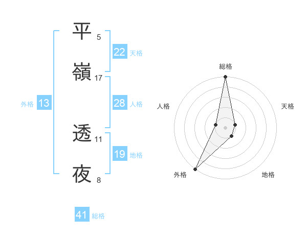 平嶺 透夜さんを姓名の画数から五運を鑑定