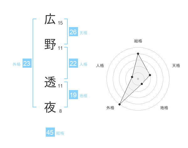 広野 透夜さんの総格は45画の4点!