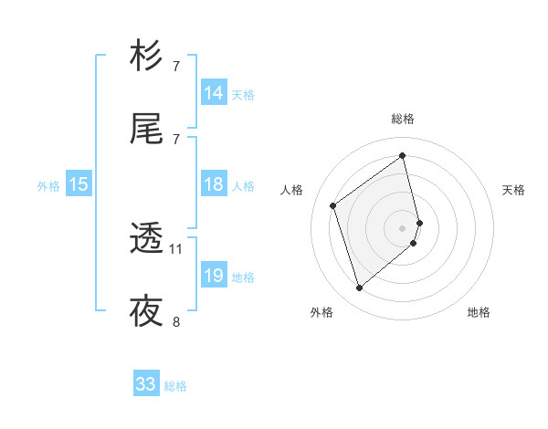 杉尾 透夜さんを姓名の画数から五運を鑑定