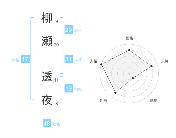 柳瀬 透夜さんの総格は48画の4点!
