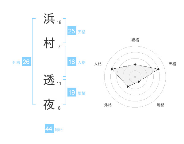 浜村 透夜さんを姓名の画数から五運を鑑定