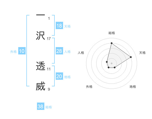 一沢 透威さんの総格は38画の4点!