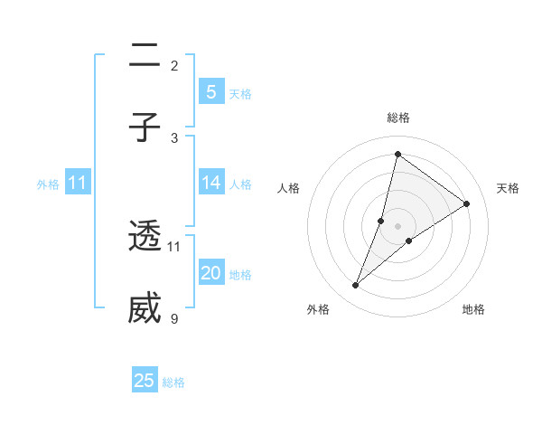 二子 透威さんの総格は25画の4点!