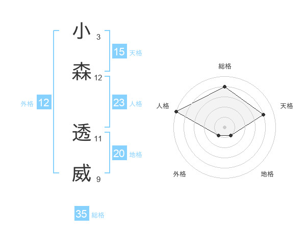 小森 透威さんの総格は35画の4点!