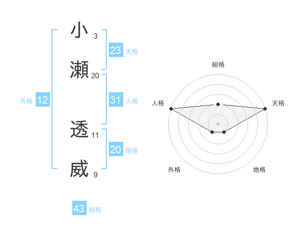 小瀬 透威さんを姓名の画数から五運を鑑定