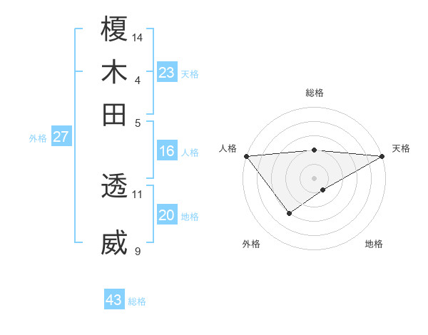榎木田 透威さんの天格は23画の5点!